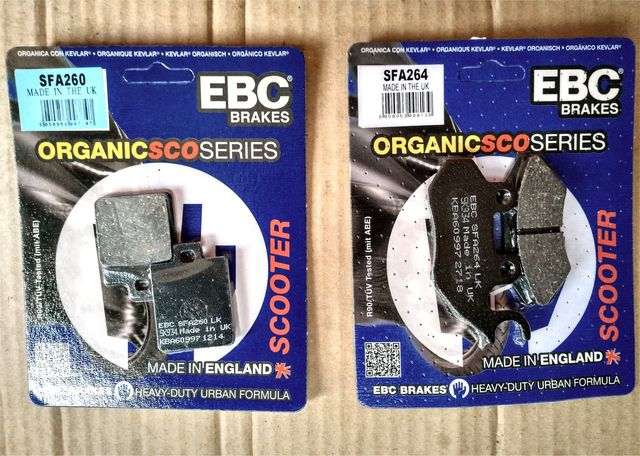 Las pastillas de freno en concreto son de la marca EBC y el modelo de las pastillas delanteras es el SFA264, el de las pastillas traseras es SFA260 y por supuesto están nuevas en su blíster precintado.