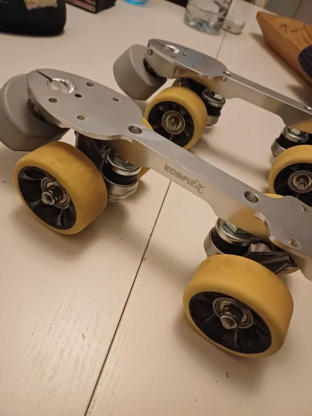 Par de patins de hoquei de la marca Komplex. - Base de alumini. - Talla 140, per 35,36,37 de peu - Rodes i coixinets inclosos - Fre nou.