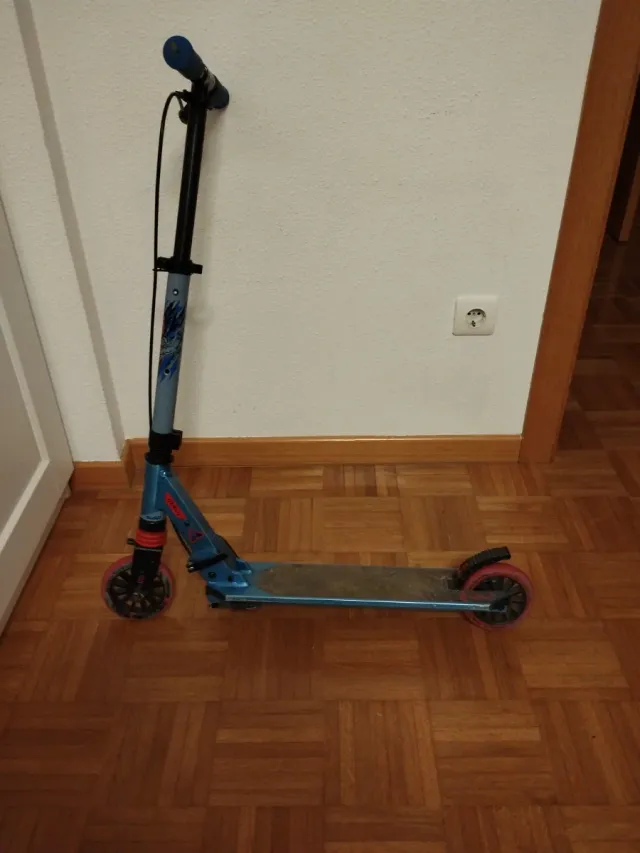 Patín de estilo libre en color azul con detalles gráficos. - Manillar ajustable. - Ruedas de color rojo. - Plataforma antideslizante.