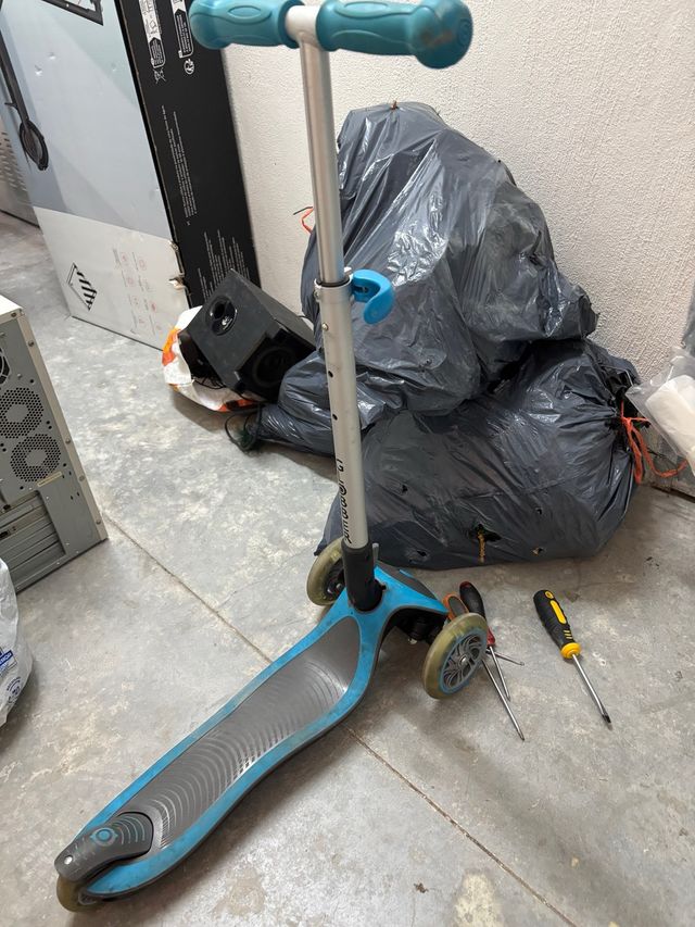 Patín de tres ruedas en color azul, ideal para desplazamientos. - Manillar ajustable en altura. - Ruedas con luces. - Plataforma antideslizante.