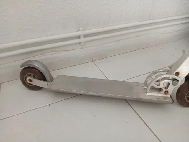 Este patín está hecho de aluminio, lo que lo hace ligero y resistente. Su diseño es sencillo y funcional. - Material: Aluminio - Ruedas de goma
