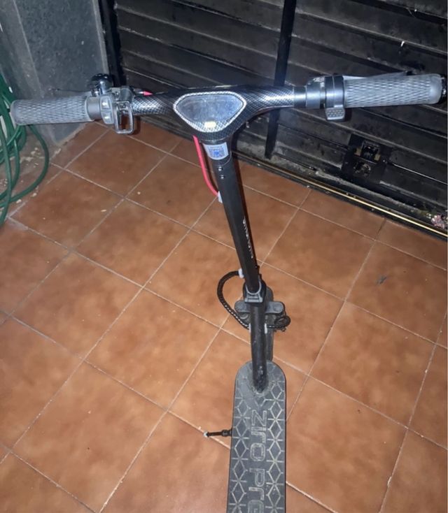 Patinete eléctrico con manillar y plataforma. - Manillar con puños texturizados. - Plataforma con diseño grabado.