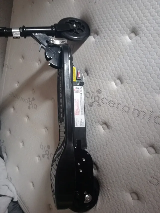 Patín eléctrico con diseño moderno y funcional. - Superficie antideslizante para mayor seguridad. - Logo E-SCOOTER visible en la plataforma.