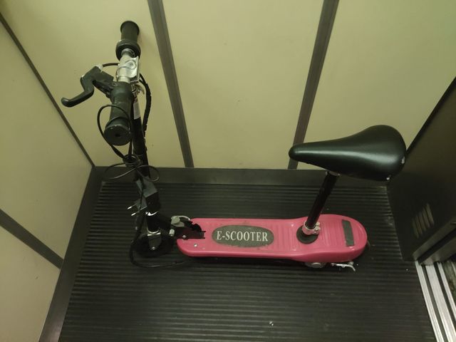 Patín eléctrico infantil en color rosa, usado pero en buen estado. - Incluye sillín. - Diseño compacto y ligero. - Ideal para niños iguales cargador