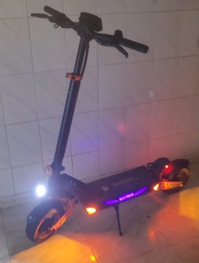 Detalles del productoPatinete eléctrico con un diseño moderno y luces LED integradas.