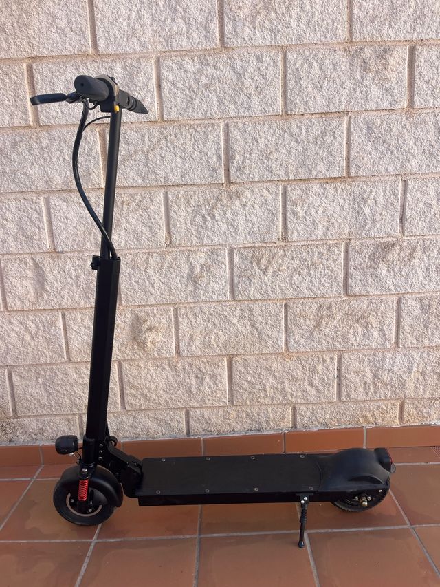 Detalles del productoPatín eléctrico de color negro, ideal para desplazamientos urbanos.