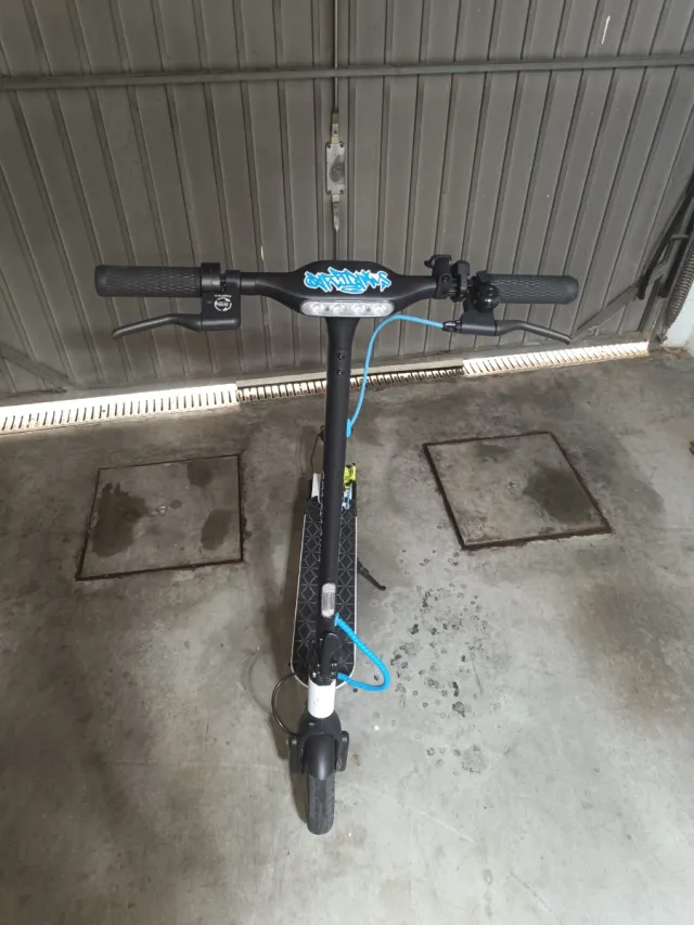 Luces led por debajo y tiene un montón de funciones con la aplicación como por ejemplo bloquear el patín con contraseña. Habria que arreglar un intermitente pero el resto está en muy buen estado.