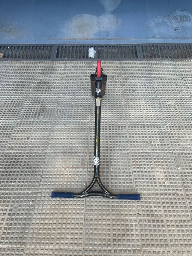Patín de freestyle con manillar azul y detalles negros. - Piezas de alto rendimiento como ruedas y puños