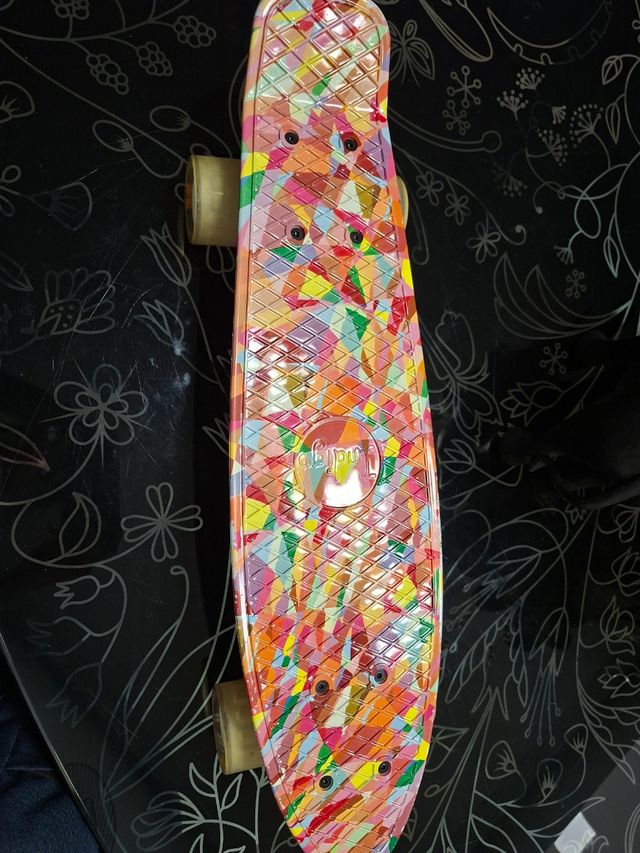 Patín infantil, ideal para principiantes. Es de color multicolor con un diseño geométrico. - Perfecto para niños. - Diseño colorido y llamativo. - Listo para usar.