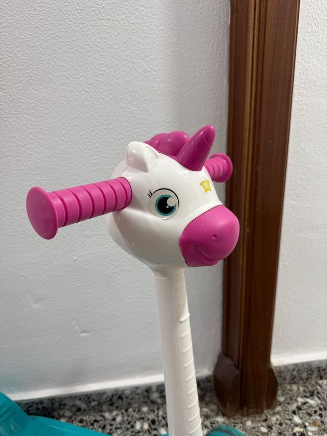 Patín infantil con diseño de unicornio. Ideal para los más pequeños. - Manillar con puños rosas. - Cuerno y detalles en rosa. - Ojos y decorativos.