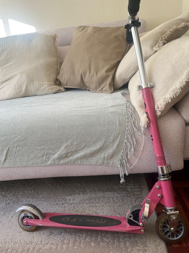 Patín de la marca Micro en color rosa. Ideal para desplazamientos urbanos. - Manillar ajustable. - Ruedas resistentes.