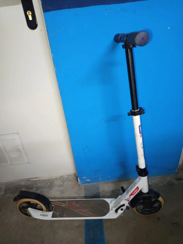 Patín de la marca Oxelo en color blanco. - Diseño moderno con detalles gráficos. - Ruedas de goma para un mejor agarre. - Manillar ajustable en altura.