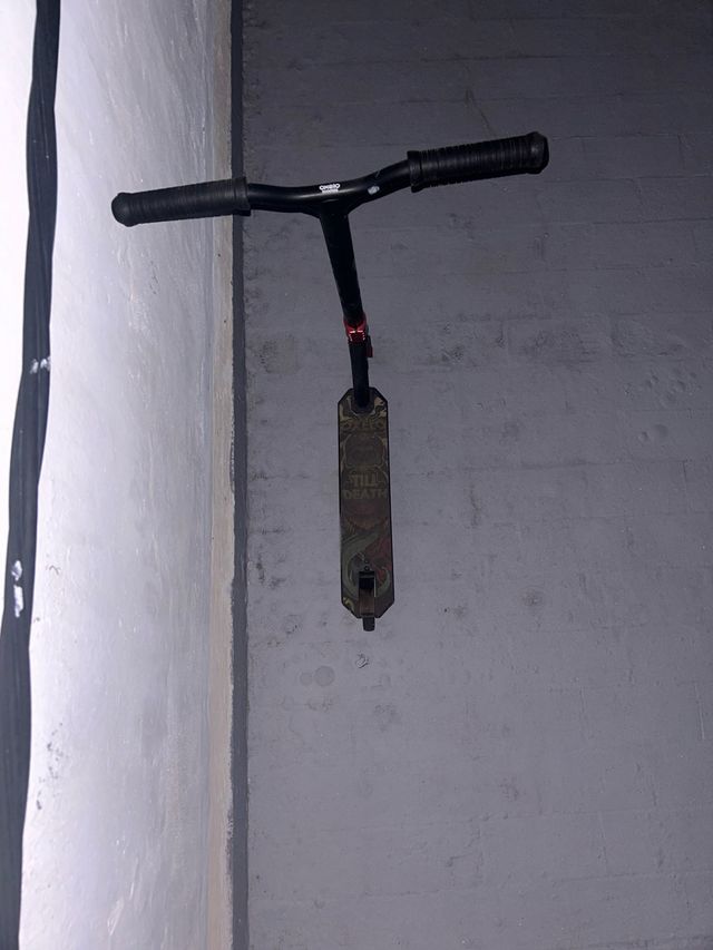 Patín Oxelo con poco uso, ideal para desplazamientos o trucos. - Manillar negro. - Plataforma con diseño gráfico. - Puños negros.