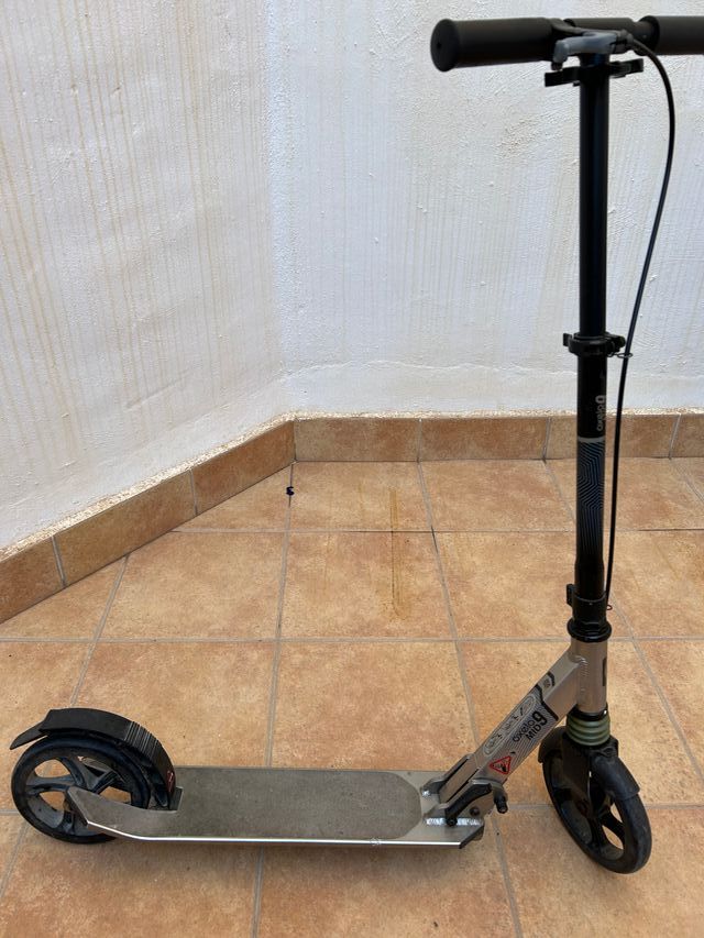 Patín Oxelo MID 9 en color gris y negro. - Manillar ajustable en altura. - Ruedas de 200 mm. - Freno trasero. - Plegable para facilitar su transporte.