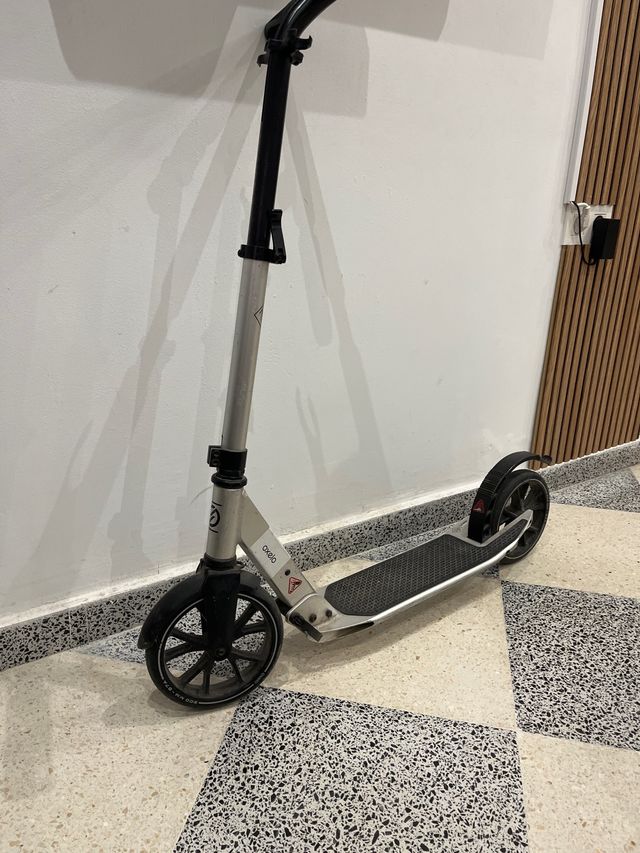 Patín de la marca Oxelo en color plateado. Ideal para desplazamientos urbanos. - Ruedas de gran diámetro. - Plataforma antideslizante. - Manillar ajustable en altura.