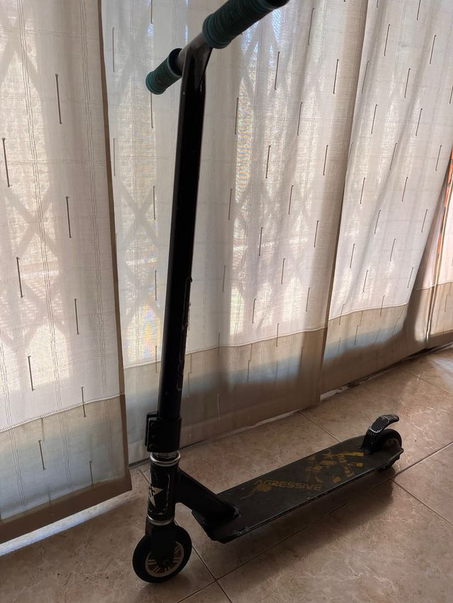 Patín de acero para saltos de niño con una altura de 82 cm y una plataforma de 60 cm de largo. Ruedas cambiadas de hace poco pesa unos 3,4 kg Vendo a parte las proteciones