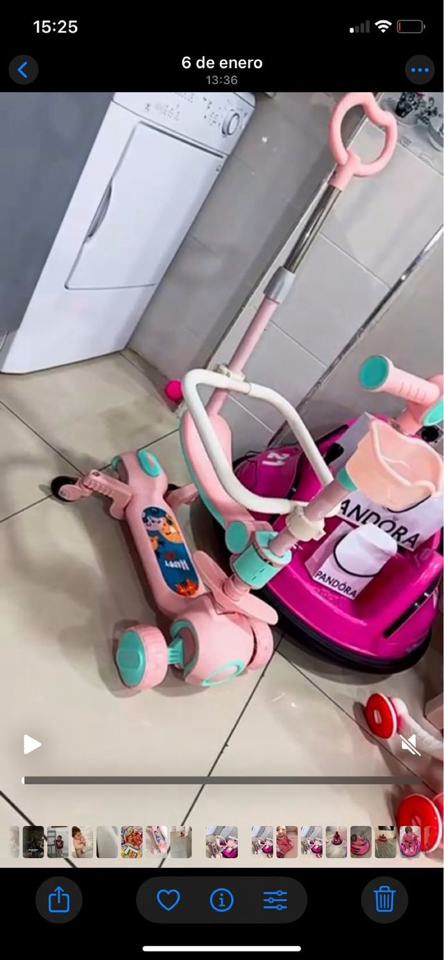 Detalles del productoPatín de tres ruedas en color rosa, diseñado para los más pequeños.