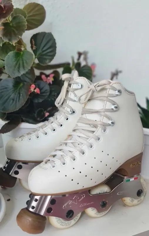 Patines de patinaje artístico marca Roll Line con botas Edea. - Talla de bota: 235 (equivale a talla 35 de calzado). - Color blanco. - Cierre con cordones.