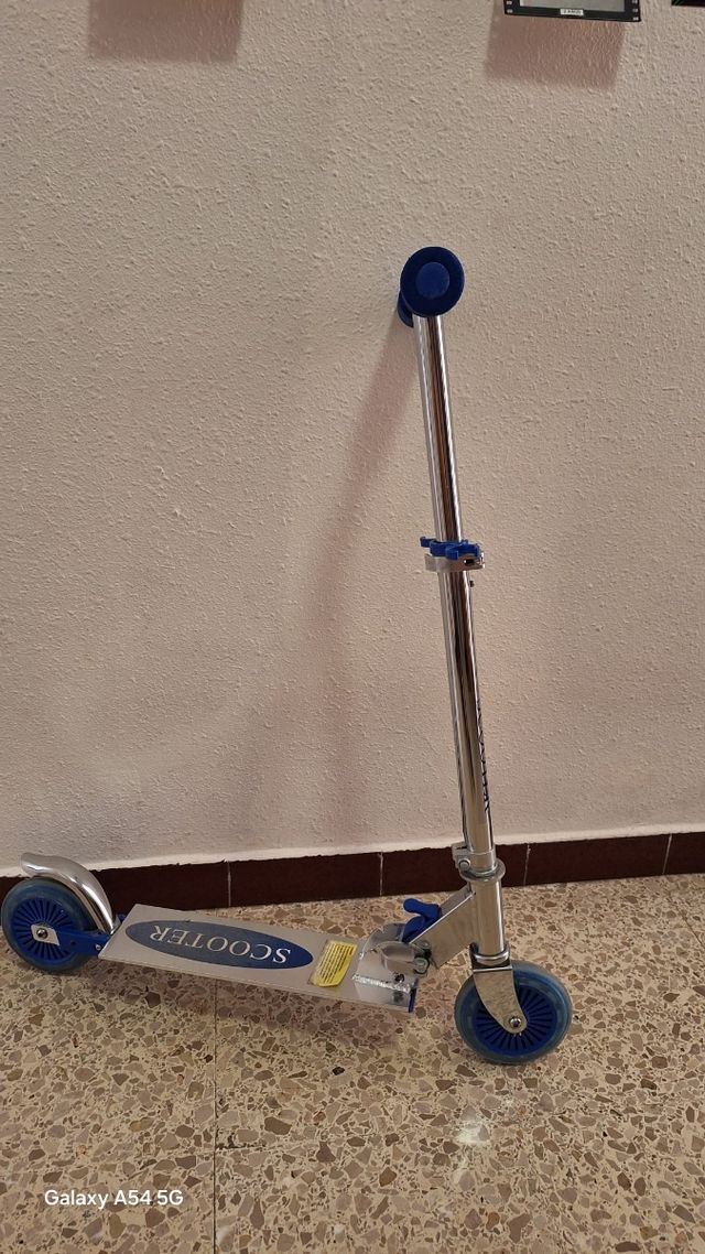 Detalles del productoPatinete Scooter 🛴 para niños/as, se puede plegar, va muy bien para guardar en espacios pequeños y transportar. Muy buen estado, usado solo 15 dias Medidas del producto