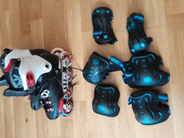 patines, rodilleras, coderas y bolsa aprox talla 42