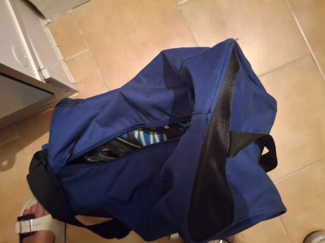 Vendo bolso deportivo de color azul marino. Está en buen estado. - Asa de hombro. - Compartimento principal con cremallera. - Bolsillo de malla en el lateral.