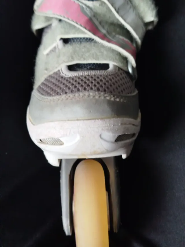 Patines blancos y rosas. Marca a roller Blade. Ajustable y extensibles. - Rueda de patín y freno en perfecto estado.