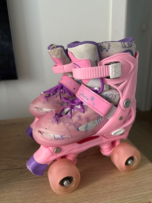 Detalles del productoEstos patines de cuatro ruedas son perfectos para iniciarse en el patinaje. Son ajustables para adaptarse al crecimiento del pie.