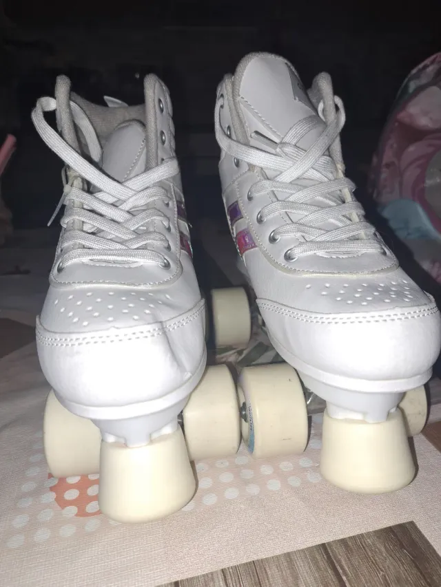 Detalles del productoEstos patines de cuatro ruedas son de color blanco y tienen un diseño alto.