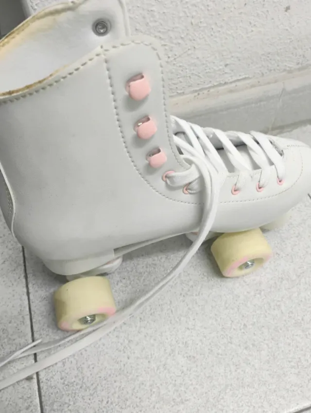 Patines 4 Ruedas Blancos con Detalles Rosas