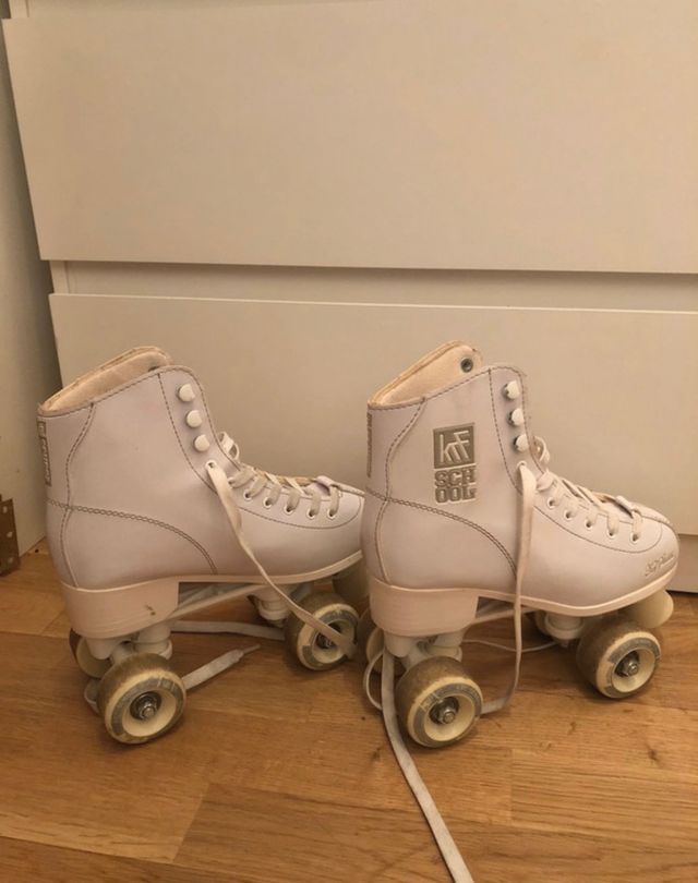 Patines de cuatro ruedas en color blanco, los nuevos valen 50 euros. - material de muy buena calidad - Cierre con cordones.