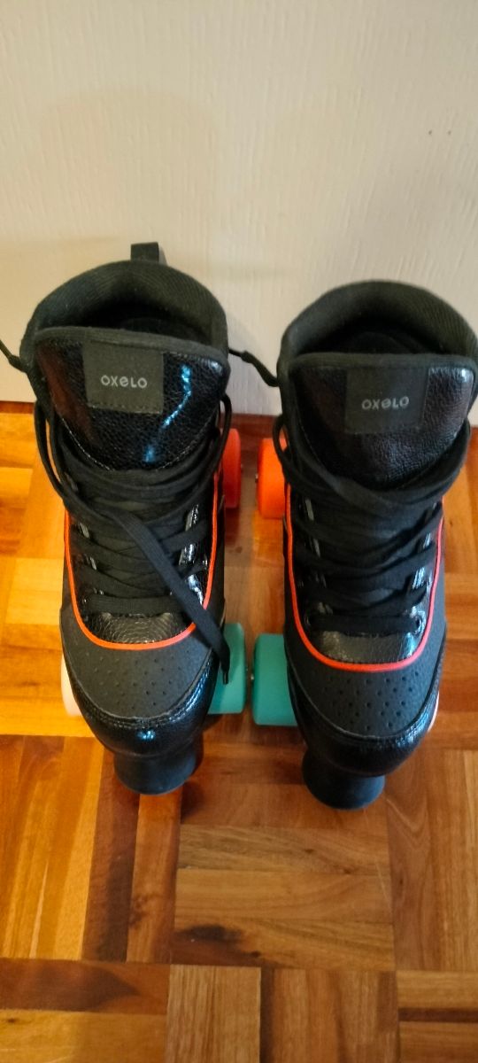 Detalles del productoPatines de cuatro ruedas de la marca Oxelo, ideales para iniciarse en el patinaje.Incluimos bolsa para guardarlos,coderas y protección de las manos.