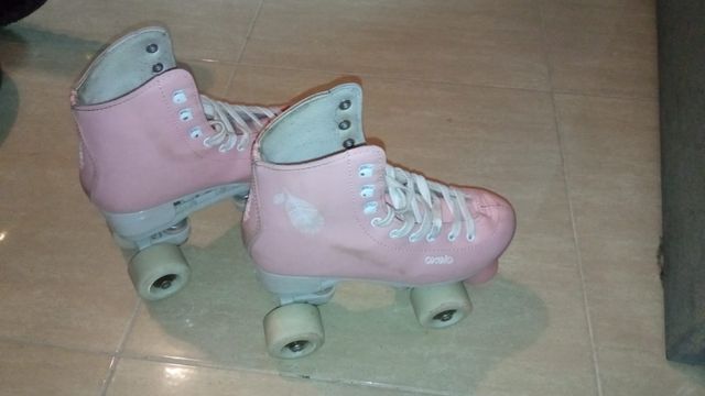 Detalles del productoPatines Decathlon marca Oxelo patinaje artístico 4 ruedas, color rosa, talla 37.