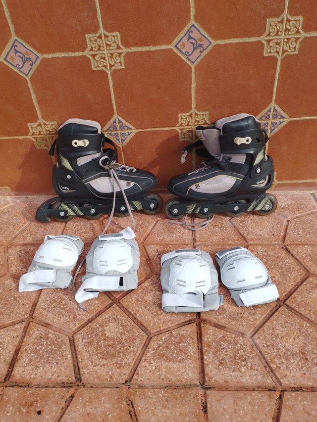 patines en línea en perfecto estado. Talla 44. Lleva protecciones de rodillas y codos