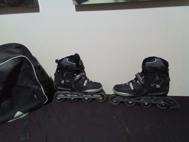 vendo este par de patines en linea rollerblade en muy buen estado , poco uso , talla 44,5 , con su mochila de transporte, no envío