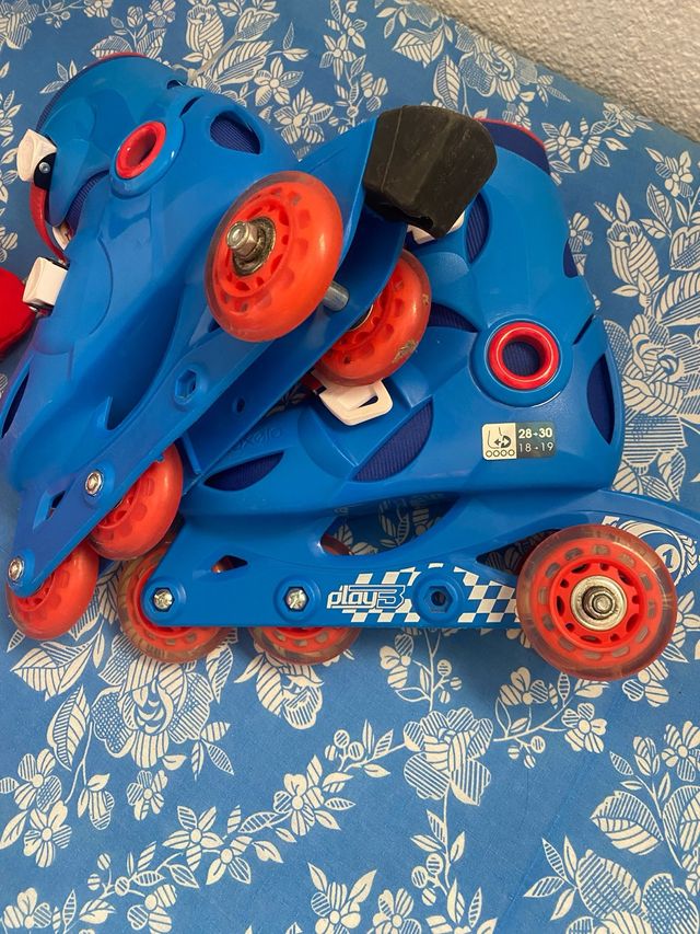 Detalles del productoPatines en línea de color azul para niños, marca Play3. Son ajustables para adaptarse al crecimiento.