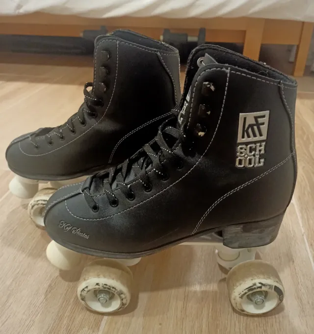 Detalles del productoPatines artísticos de cuatro ruedas en color negro. Talla 39. Muy poco uso.