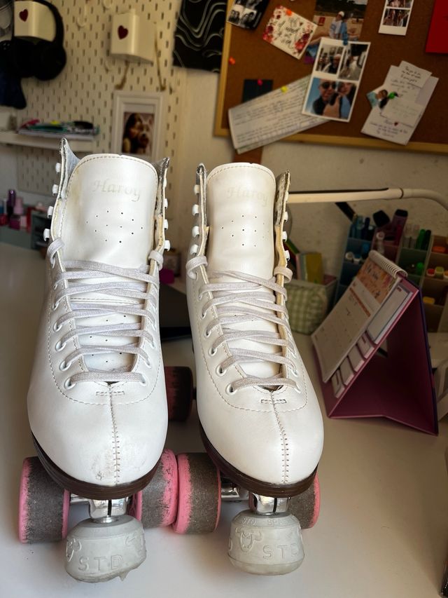 Detalles del productoPatines de pre-competición blancos de la marca Harcey, en buen estado. Son ideales para principiantes o para uso recreativo.