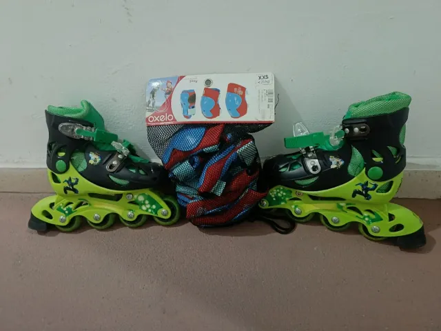 Detalles del productoSet de patines en línea para niños, con protecciones incluidas.