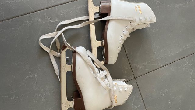 Patines de hielo artístico Davos, talla 29. Son de color blanco y están en buen estado. Usados una vez. - Marca: Davos - Talla: 29 - Color: Blanco