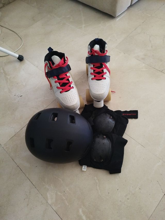 Los patines de la talla 40/41 están en perfectas condiciones,se entrega con casco de protección y las rodilleras.