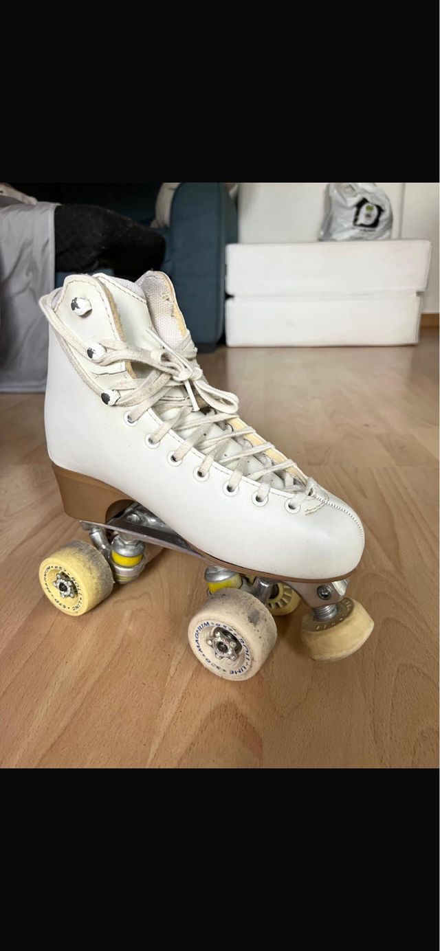 Patines de patinaje artistico que estan usados pero de muy poco tiempo. Talla 38. Fundas moradas inculidas.