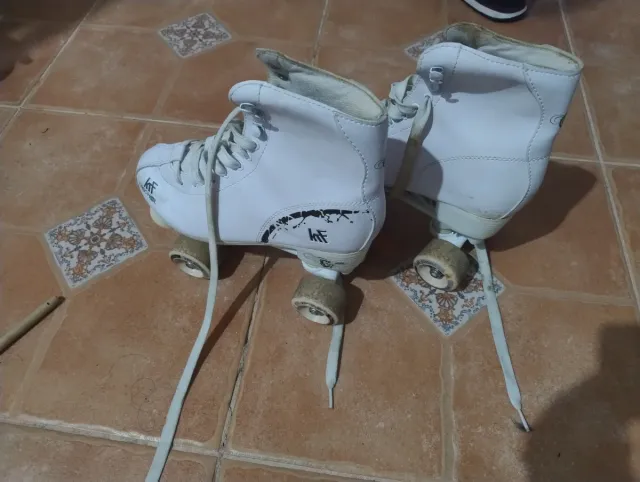 Se venden patines de 4 ruedas en color blanco. - Diseño clásico. - Cordones blancos.
