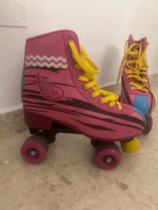 Detalles del productoPatines de cuatro ruedas con un diseño llamativo y colorido.