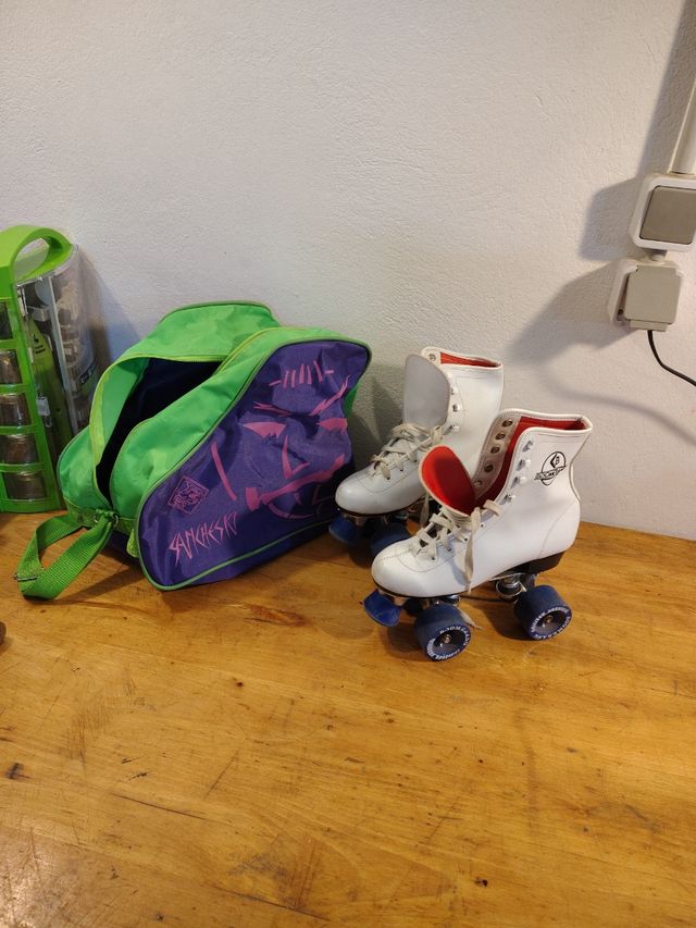Patines para artístico de marca Boomerang y bolsa de la marca Sancheski, tiene al menos 40 años pero está perfectamente conservado.