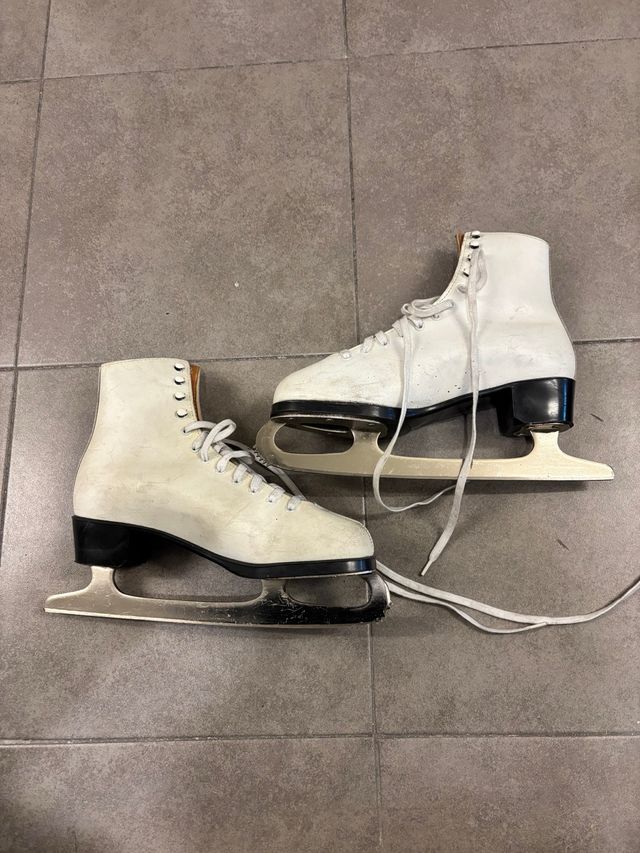 Se venden patines de hielo blancos. - Cierre con cordones. - Diseño clásico para patinaje.