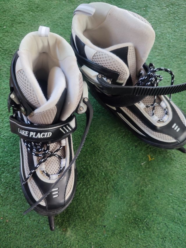 Patines de hielo usados, marca Lake Placid. Ideales para principiantes. - Color negro y gris. - Sistema de ajuste. - En buen estado.