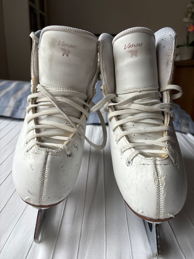 Patines de hielo Risport modelo Venus. - Color blanco. - Cierre con cordones. - Cuchillas de patinaje artístico. Modelo MARK IV Talla 240, equivale a talla 36