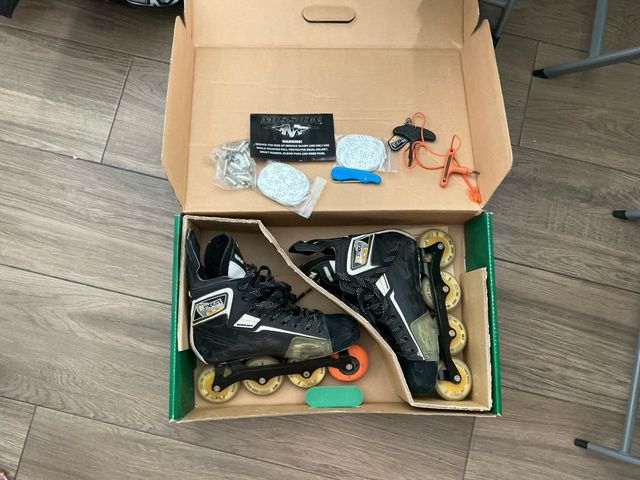 Patines de hockey en línea Mission LIEUTENANT talla 43 - Color negro y blanco. - Ruedas amarillas. - Incluye herramientas y accesorios.