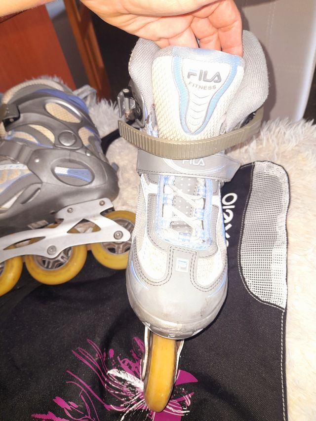 Patines en línea marca Fila, con uso pero aún le queda mucho que rodar, regalo la funda para poder llevarlos comodamente