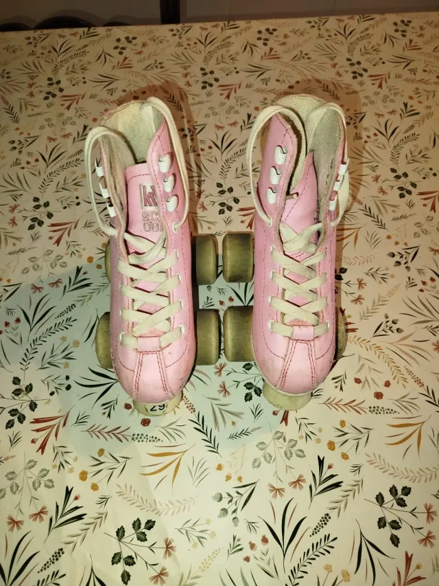 Patines de cuatro ruedas en color rosa, talla 29. - Diseño clásico. - Cierre con cordones blancos. - Ruedas de color amarillo pálido.